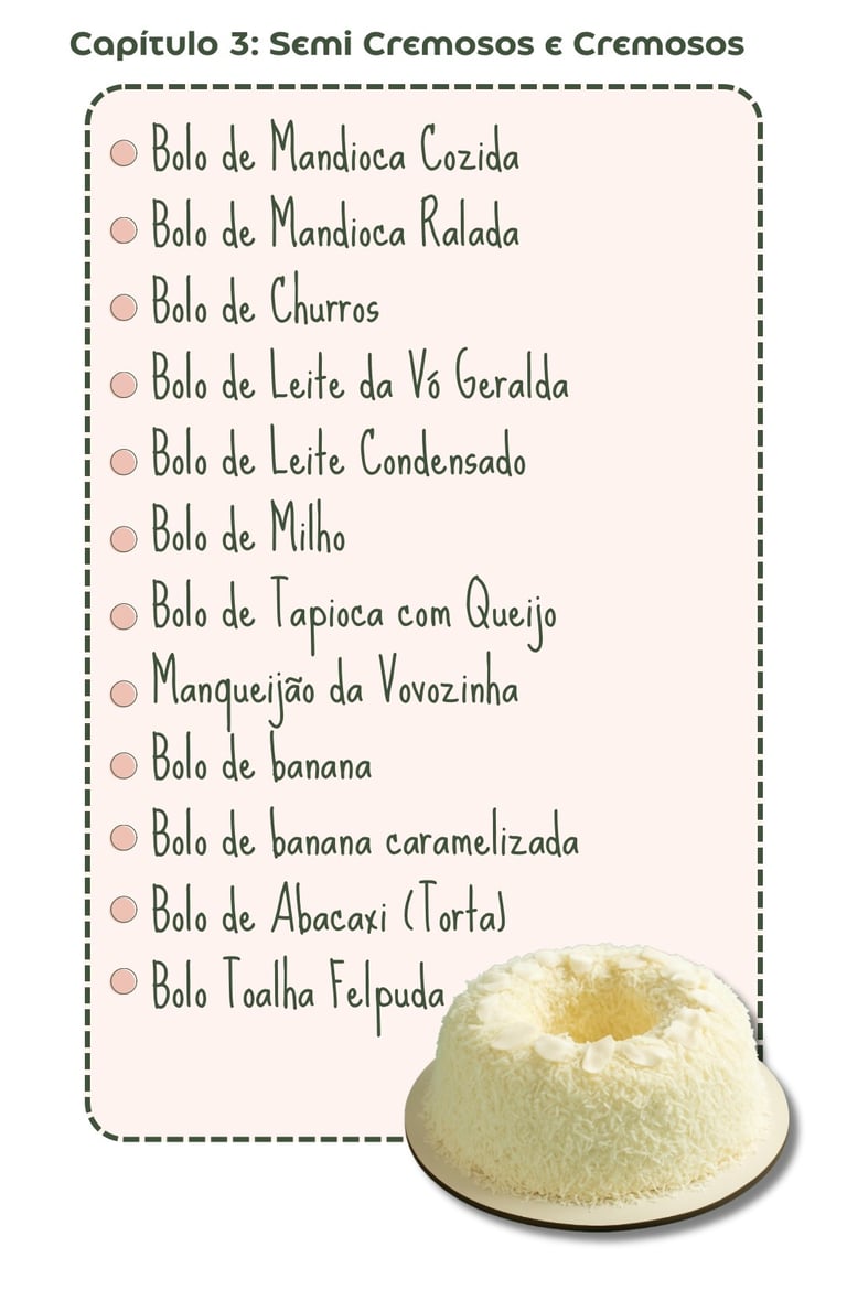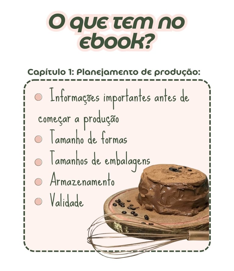Além da Aula Live Bolos Caseiros 2.0, você ainda vai receber o E-book Bolos Caseiros Atualizado 📖